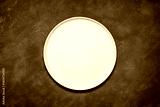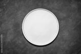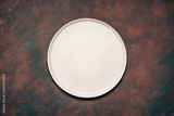 Empty beige plate on dark grunge rusty background, top view, flat lay, copy space.