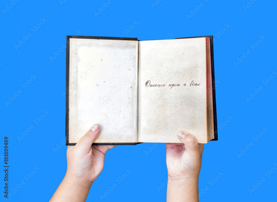 kid hand open old book story