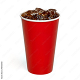 Cola with ice in red takeaway paper cup mockup or mock up isolated on white background including clipping path