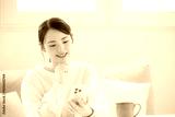 スマホ持つ女性が笑顔で幸せ感じる室内のかわいい日本人 問い合わせなどで考える よくある質問のイメージ