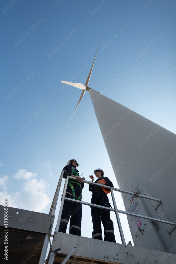 Wind Turbine Maintenance and Repair Technician, Engineer Checking Turbines working maintenance clean power generator system