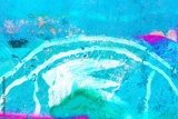 Aqua blue abstract paint texture with neon pink, white accents. 90s retro style, reminiscent of trippy design, vibrant colors. Posters, backgrounds, digital art, funky wave patterns.