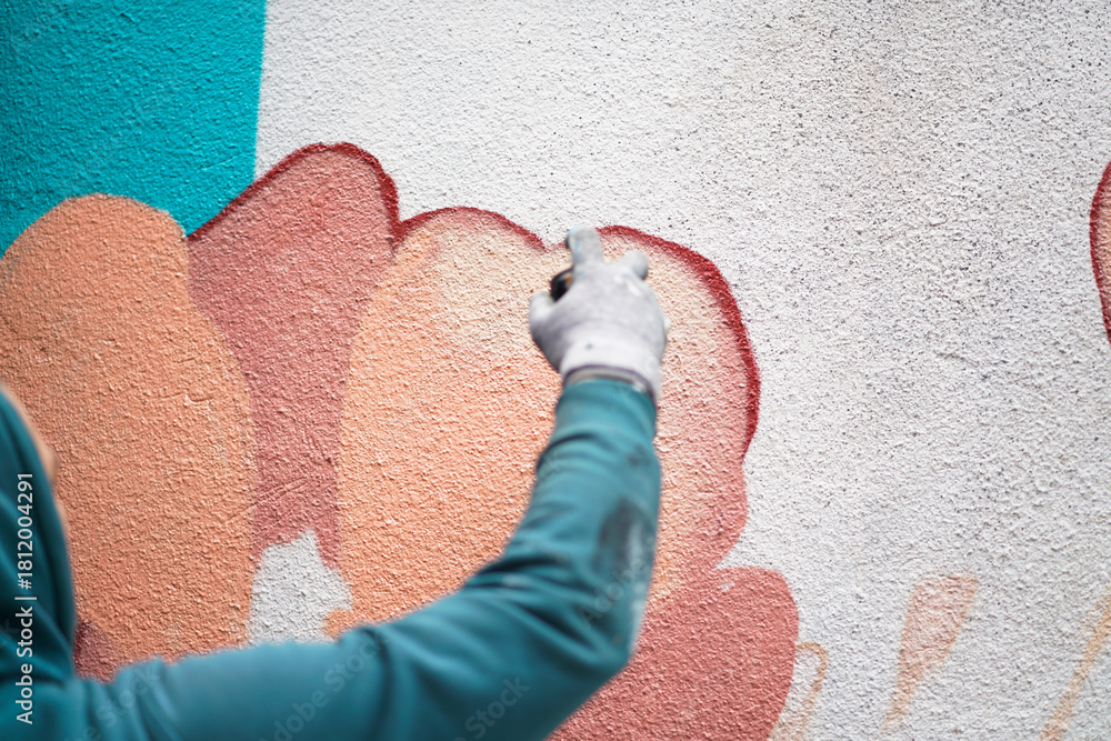 Painting graffiti on the wall. Close up.