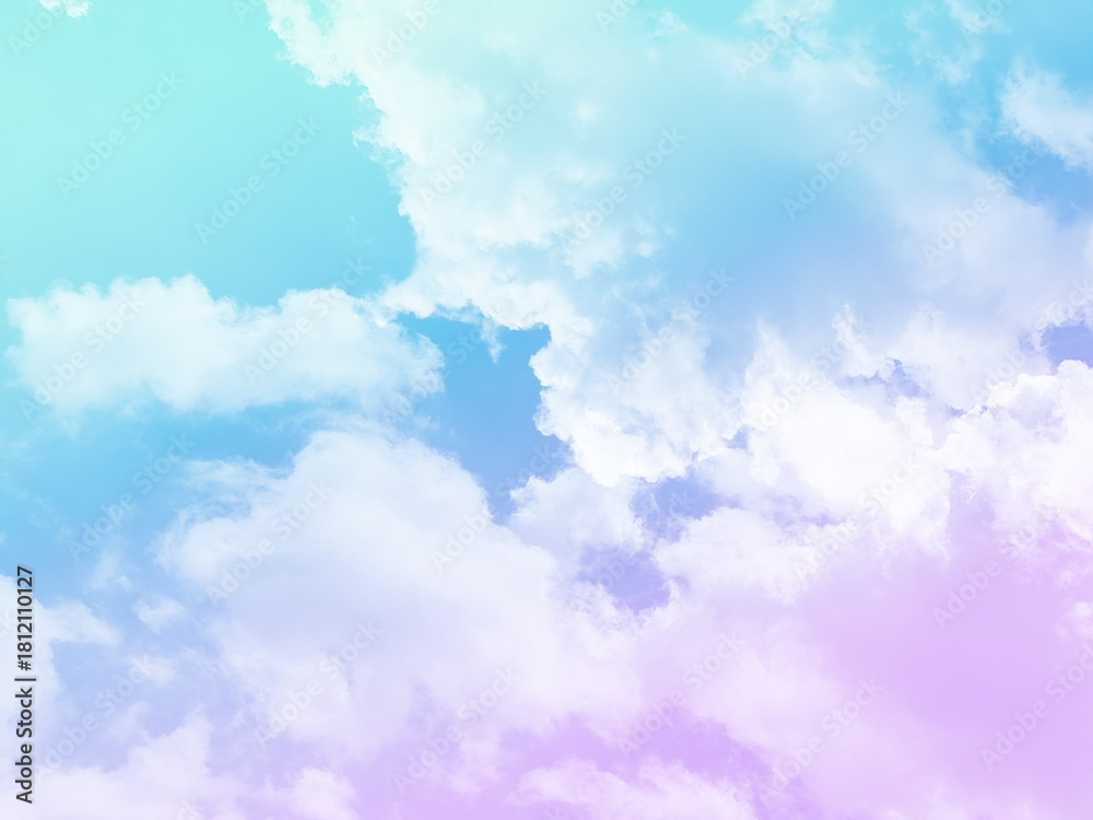 beauty sweet pastel violet and blue colorful with fluffy clouds on sky. multi color rainbow image. abstract fantasy growing light