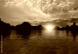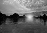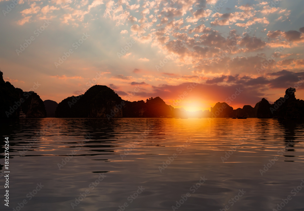 Sunset in the morning on the harbour In Ha long Bay in Vietnam