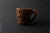 Coffee cup / Creative concept photo of a cup made of coffee on black background.