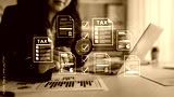 A concept of the tax compliance process. This shows the auditing and verification of various financial documents and forms to ensure regulatory adherence for business accounting. Fermion