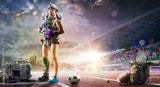 Multi-sport collage depicting various sports and hobbies. A multi-sport background combining various sports. Boxing, basketball, paintball, soccer, football, hockey, cycling, fitness, gymnastics
