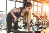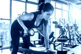 Fit young woman lifting weight in gym. Morning exercise in fitness center.