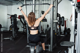Young fitness lady doing exercises for arms with weight