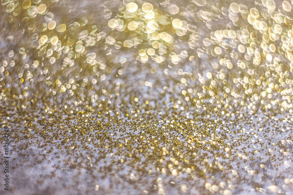 Gold texture of gloss on a gray background. A golden explosion of confetti. Golden grainy abstract texture.