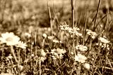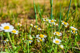 Wild chamomile flowers blooming on a meadow