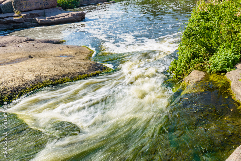 View on Tokovsky waterfalls and rapids on the Kamianka river. Dnipropetrovsk region, Ukraine