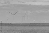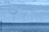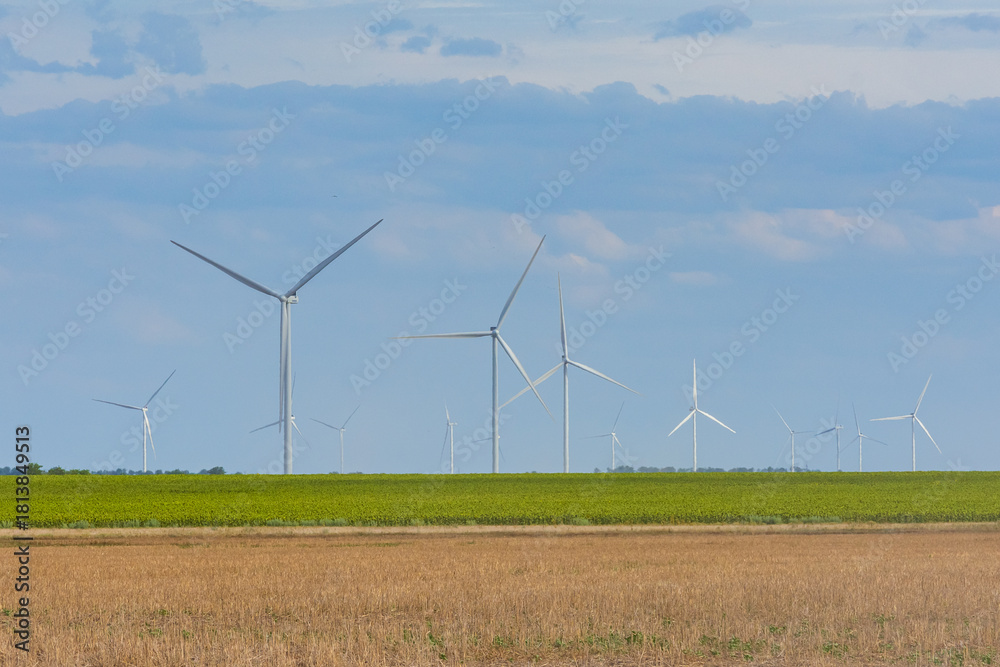 Wind turbines at the agricultural field. Clean energy. Ecological concept