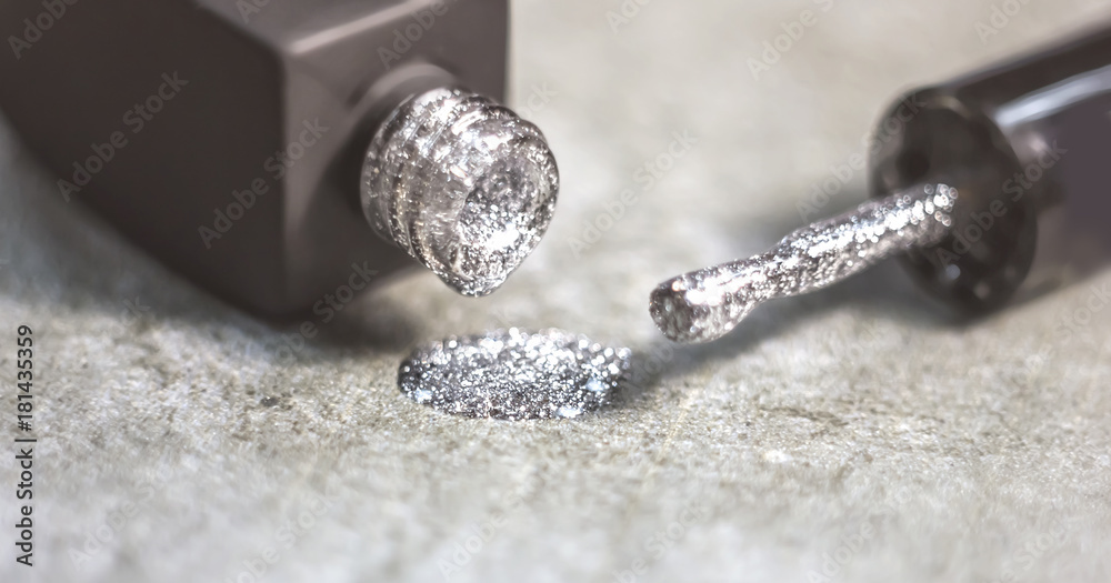 Texture of shiny nail polish shine closeup.a bottle of nail polish next to the brush. The concept of cosmetic