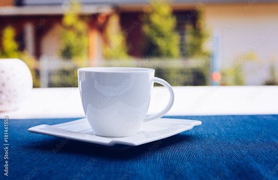 Freshly made coffee in a small white cup