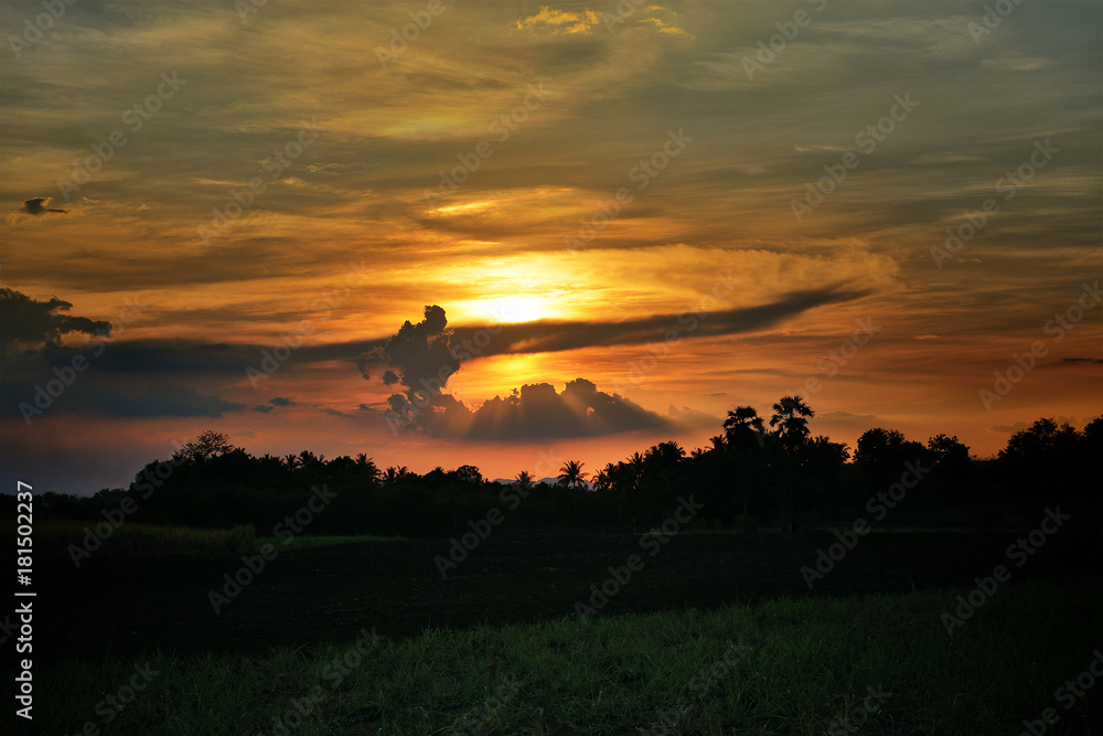Agriculture field at sunset