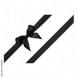 Black bow tied using silk ribbon, cut out top view, corner