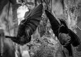 Two male Victoria's Riflebirds in competitive display on a rainforest perch, Atherton Tableland, North Queensland