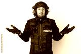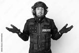 SWAT caucasian man isolated on white background having doubts while raising hands