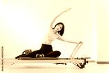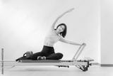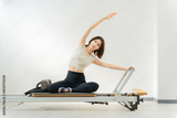 ピラティス女子 日本人女性がリフォーマーでポーズ