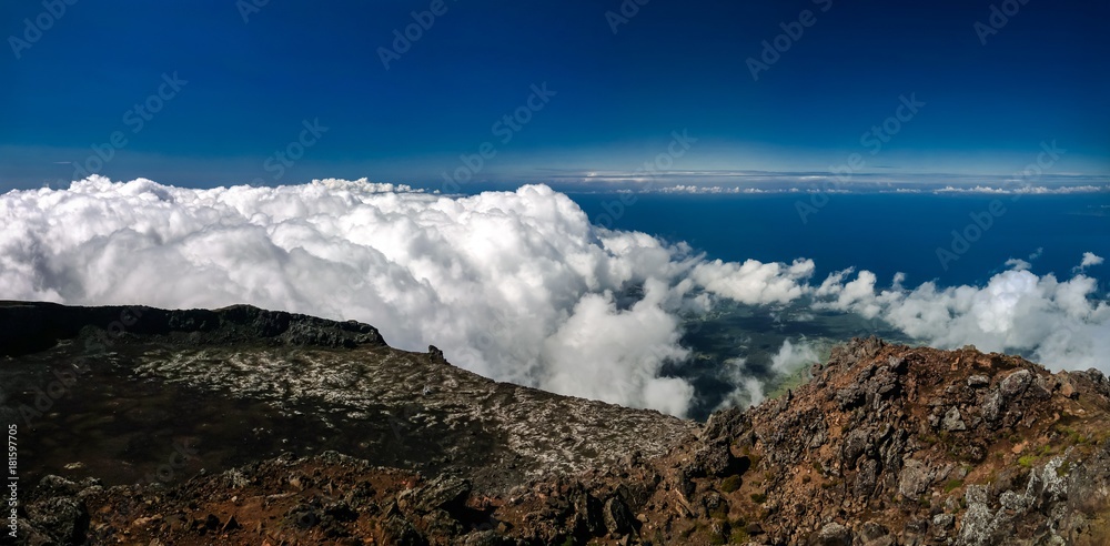 Panorama landscape from the top of Pico volcano at hiking, azores, Portugal