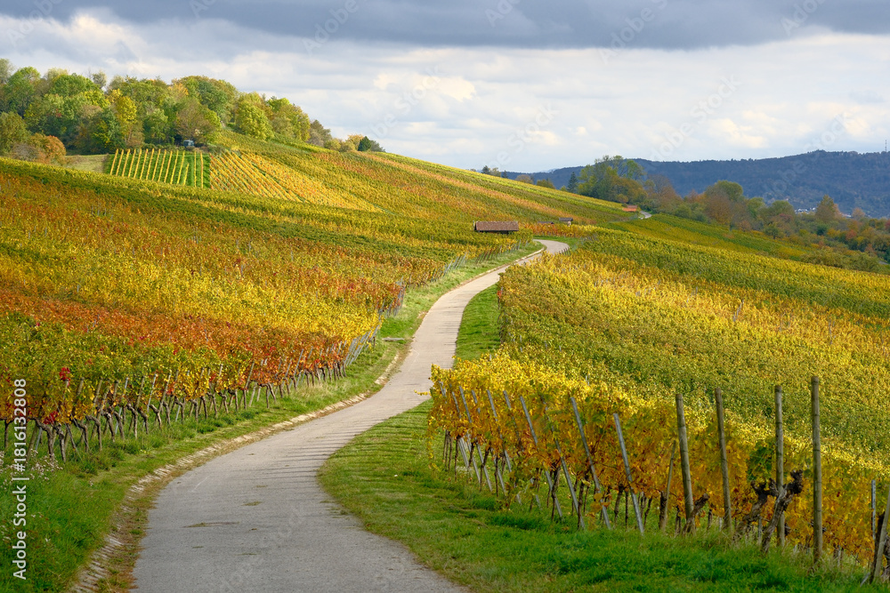 Vineyard and road in the vineyard Autumn colours