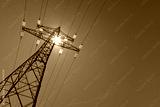 electricity pylon with sun and sky