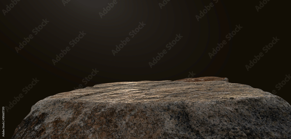 Rock, Beige brown Stone Podium product Background, Object isolated on Dark Wall Studio light backdrop well stage stand floor mockup Display, cosmetic presentation platform, clipping path