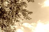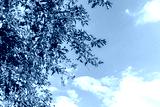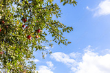 ripe red apple fruits on tree branch and blue sky