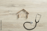 Conceptual of property insurance with the stethoscope next to the shape of a residential house