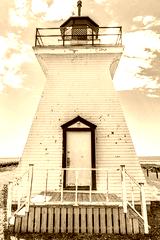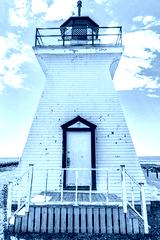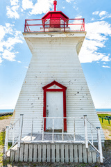 Bonaventure village pointe lighthouse in Quebec, Canada Gaspesie region with red and white painted colors