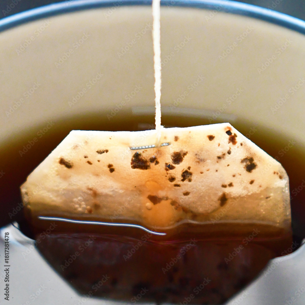 Tea bag in a tea cup. Healthy herbal tea in a mug.