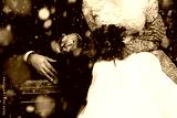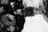 Happy bride and groom enjoying romantic moments outdoors. Wedding couple.Winter concept.