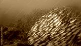 Underwater photo of school of fish at a coral reef. Yellow Snapper Fish. From a scuba dive off the coast of the island Koh Lanta in the south Andaman Sea in Thailand.