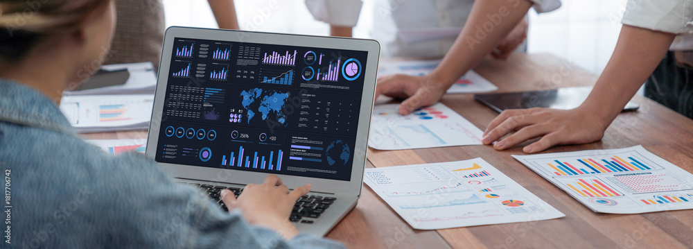 Business data dashboard provide business intelligence analytic for marketing strategy planning brisk with big data set to analyze customer demands and foreseeing business future