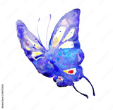beautiful blue butterfly,watercolor,isolated on a white