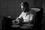 Business man eat pizza during a late night at office. An overworked man works on his laptop while having dinner in the workplace. A manager eat takeaway meal while finishing office work at night.