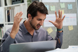Overworked Office latin man Employee Screaming in Stress and Burnout, Exhausted and Upset with Heavy Document Work