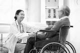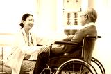 The compassionate doctor smiles warmly while treating an elderly patient at home, providing gentle care and positive support that brings comfort and hope, showing how dedicated caregivers