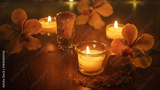 Candlelight, aromatic salt, and orchid flower at a spa.