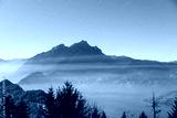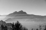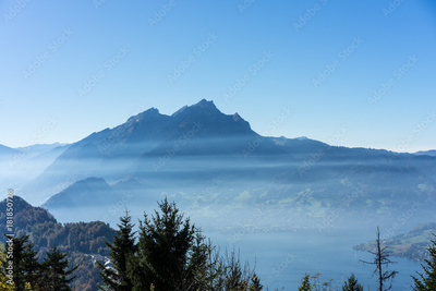 Buergenstock mountain landscape with fog, near lucerne switzerland