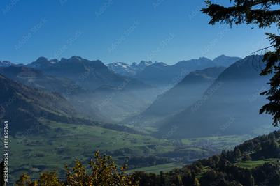 Buergenstock mountain landscape with fog, near lucerne switzerland