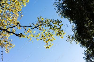 yellow tree limp with blue sky