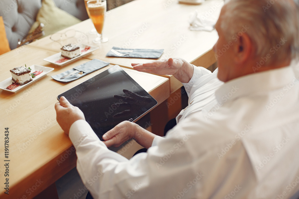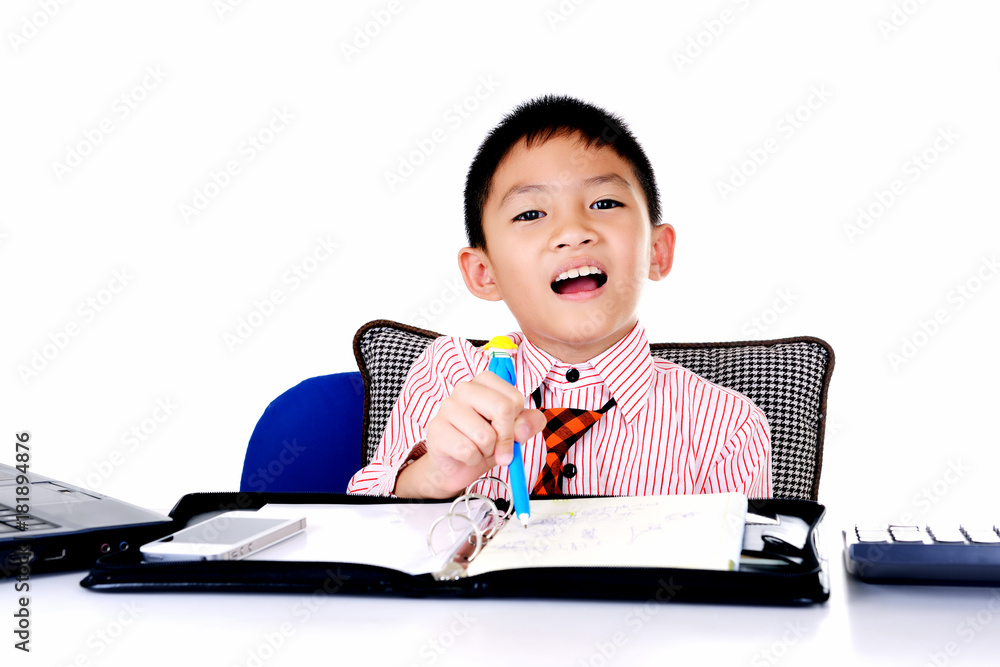 Business boy writing document in office