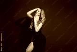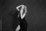 Elegant red backdrops and a glamorous woman in a dazzling black sequin dress posing with attitude for fashion beauty luxury and festive appeal