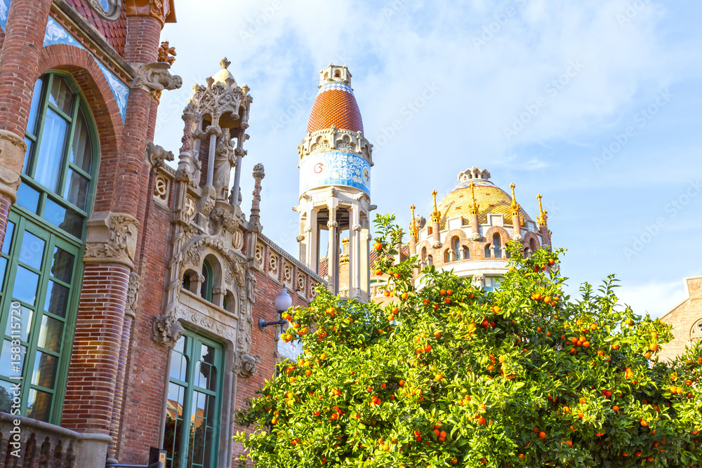christmas tree isolated on brightly colored, blurry market stall with shiny lights in the evening, background for christmas, city festivals, and events with copy space