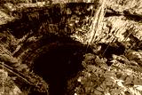 Cenote San Lorenzo Oxman near Valladolid, Yucatan, Mexico. Swimming and relaxing in deep turquoise clear water.