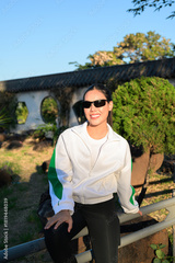 Young Asian Woman in Sporty Casual Outfit Outdoors Wearing Sunglasses
