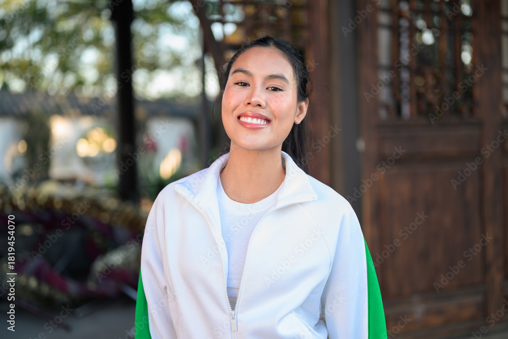 Young Asian Woman in Sporty Casual Outfit Outdoors
